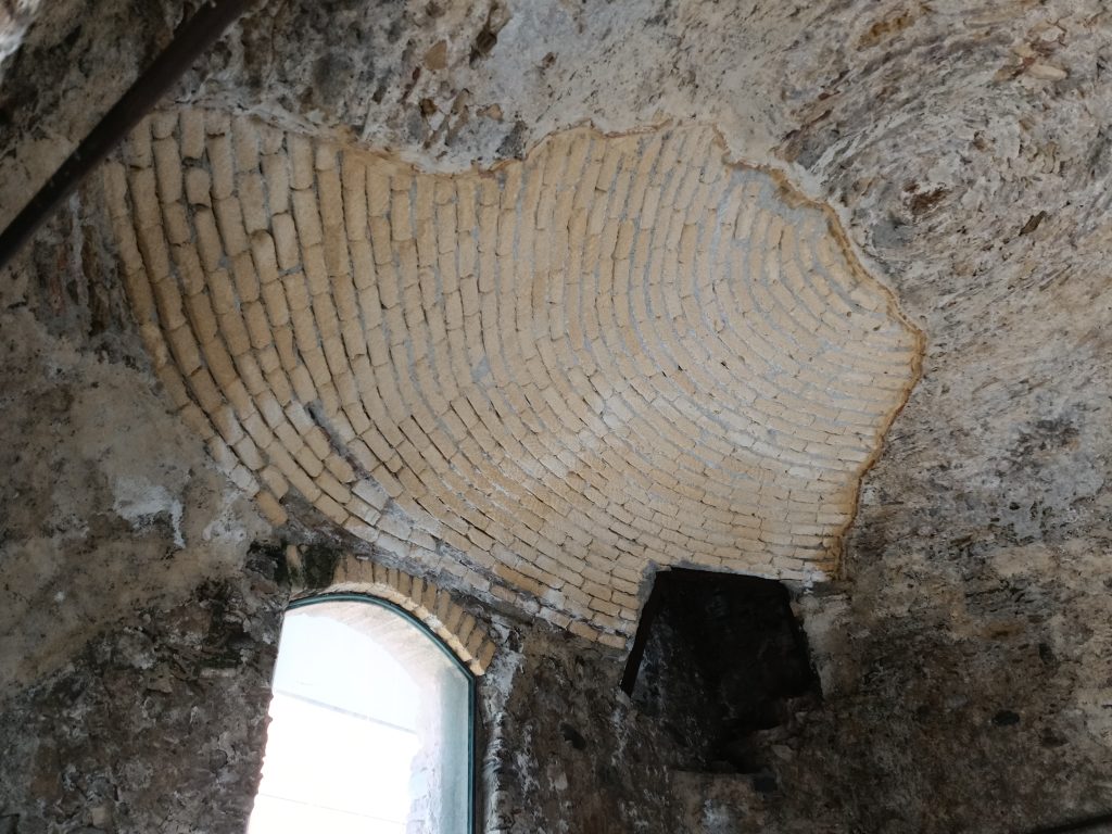 Nell’angolo di nord-ovest è presente un’apertura che consentiva l’accesso ad un piccolo terrazzo, variazione forse eseguita in virtù di trasformazione in piccola torre.
